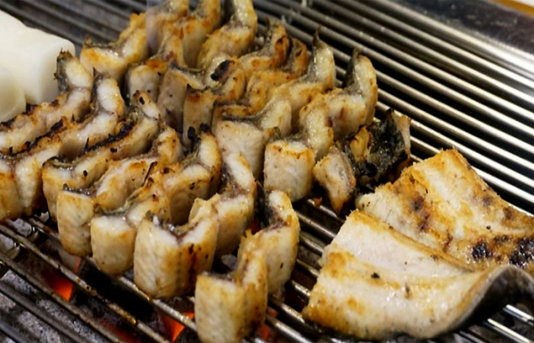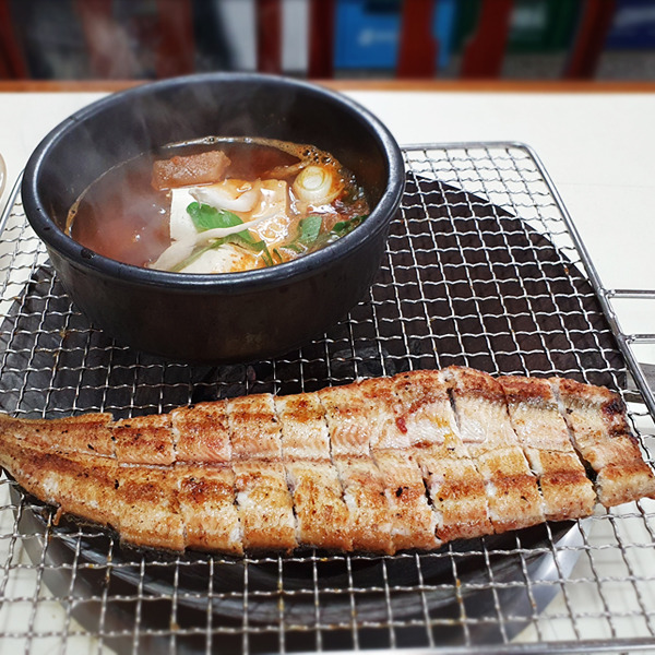 주문 즉시 살아 있는 곰장어를 손질해 조리하는 방식이 특징인 곰장어 전문점입니다. 대표 메뉴인 양념구이는 고추장 양념에 버무린 곰장어 위에 다진 마늘을 듬뿍 올려 제공하며, 마늘이 익어가며 느껴지는 매콤달콤한 감칠맛이 인상적입니다. 곰장어 특유의 식감과 양념의 조화로 현지인들에게 꾸준히 사랑받는 곳입니다.